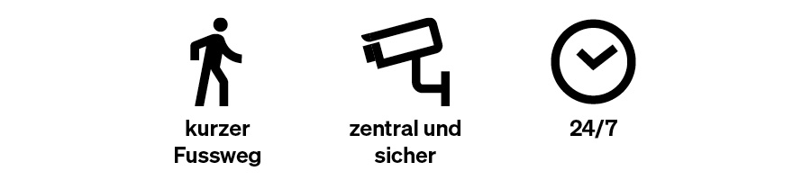 Im Parkhaus Central sind alle Parkplätze bewusst grosszügig geplant. Kein Manövrieren, kein Quetschen. Jedes Parkfeld ist bequem breit, um problemlos ein- und auszuparken. Durch Videoüberwachung und 24/7 Personalbesetzung ist die Sicherheit gewährleistet.